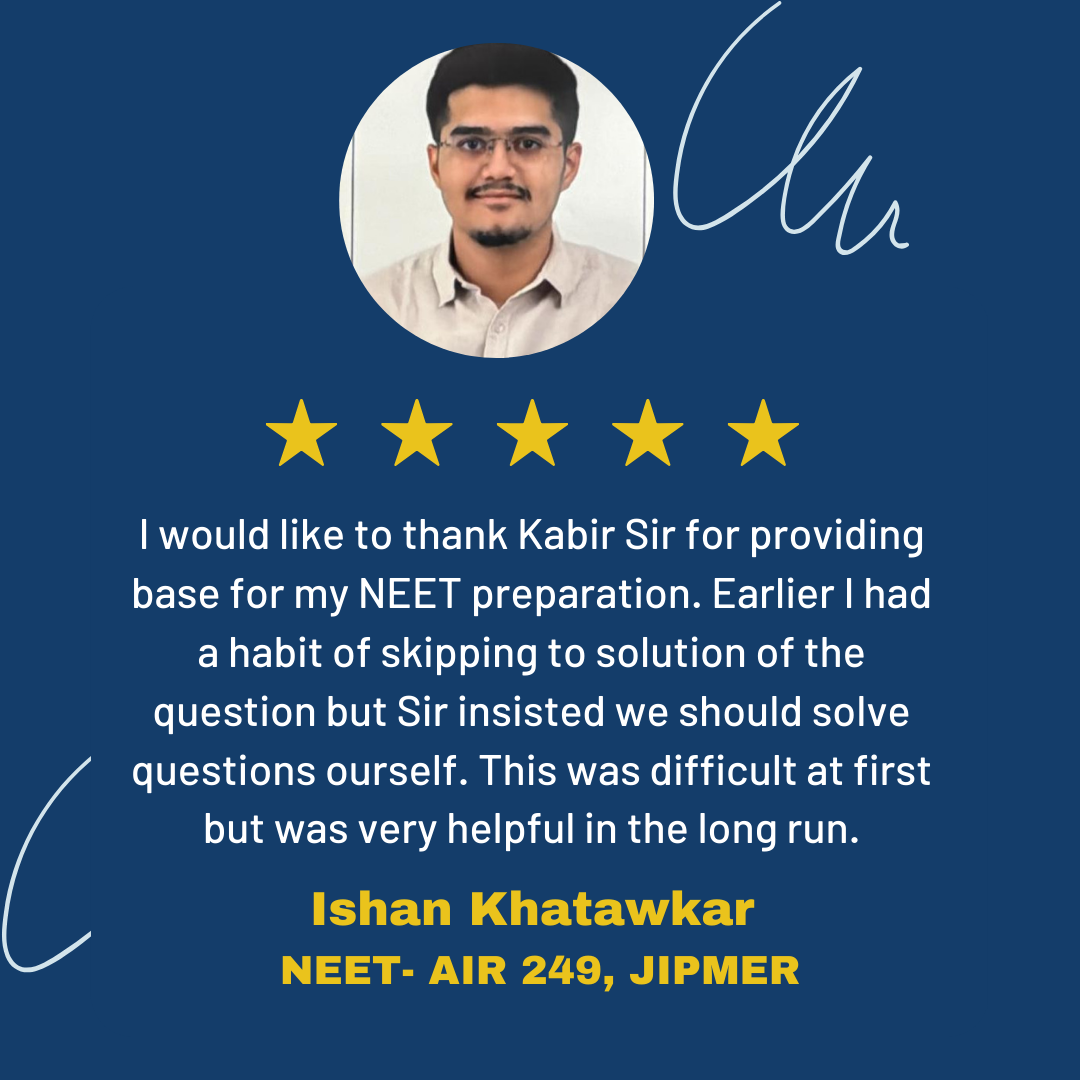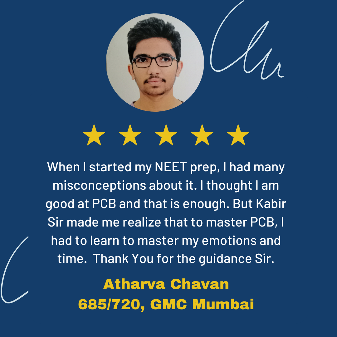 He has a 12 years’ experience in JEE/NEET teaching and mentoring as well as imparting emotional & behavioral skills. He has mentored AIR 103, 280, 323, 518 etc. in JEE-Advanced and AIR 249, 270, 560 etc. in NEET.